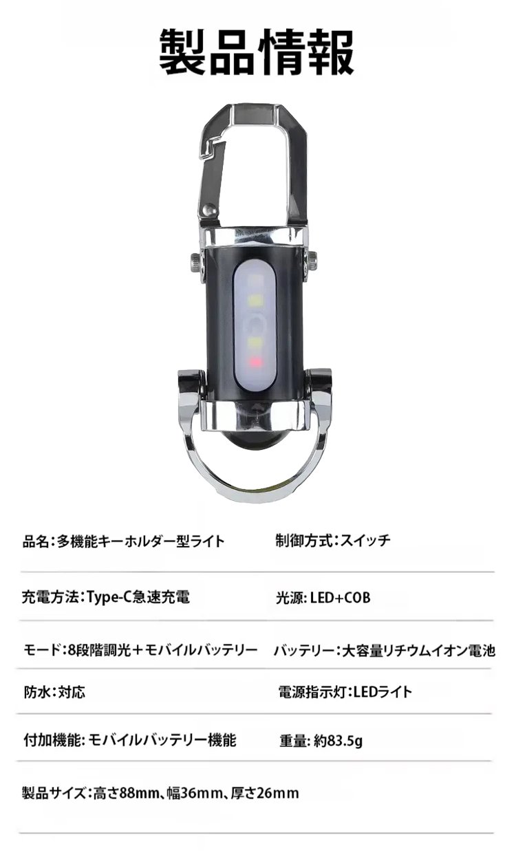 マルチライト™ キーホルダー型LEDライト - 持ち運び便利で多機能